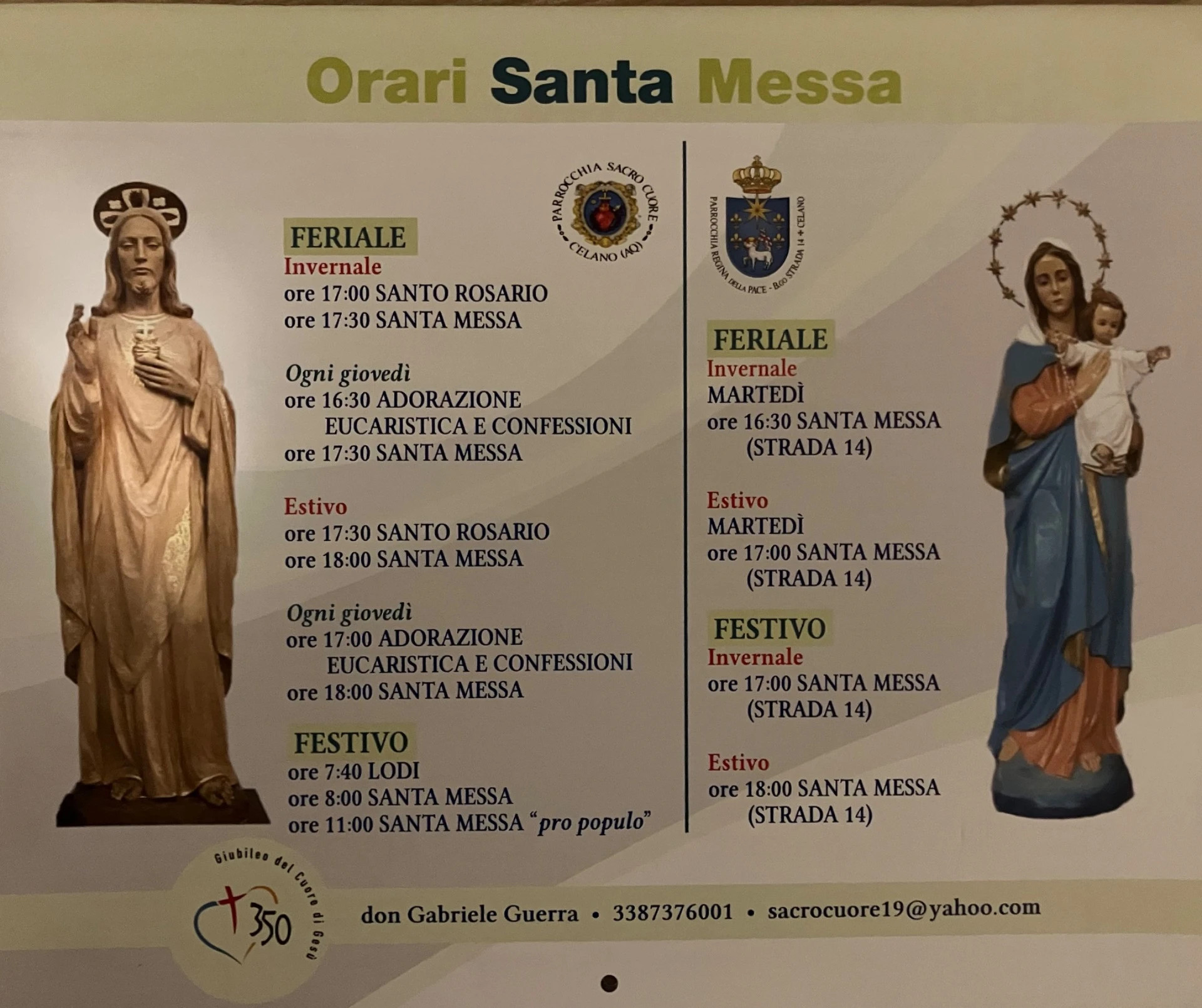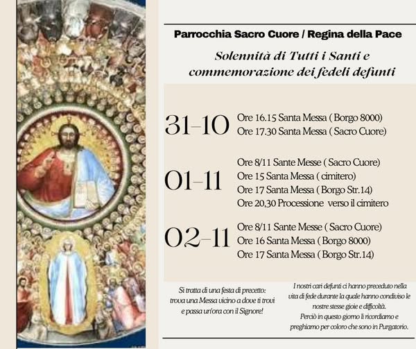 - Ore 8/11 Sante Messe (Sacro Cuore)