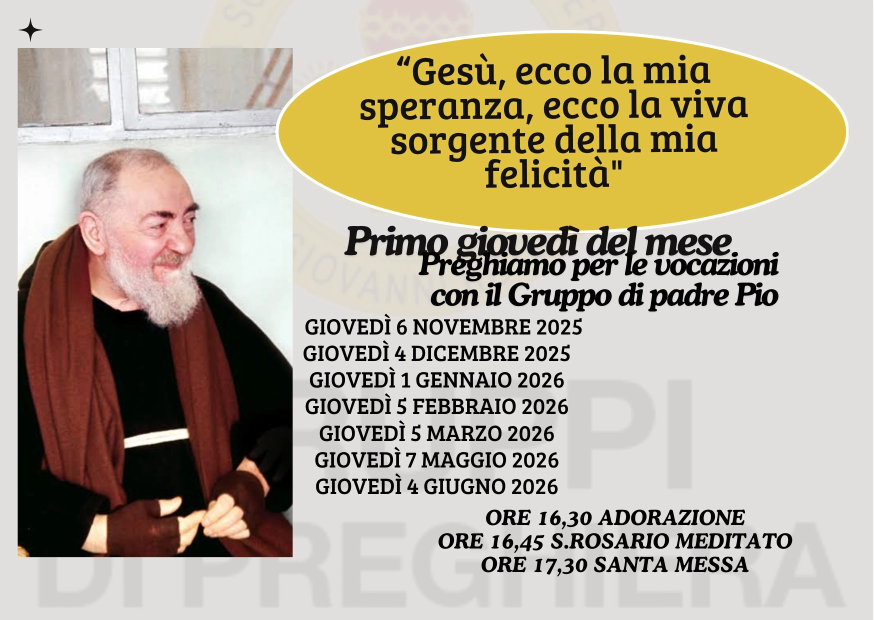 - Ore 16,30 Gruppo Padre Pio