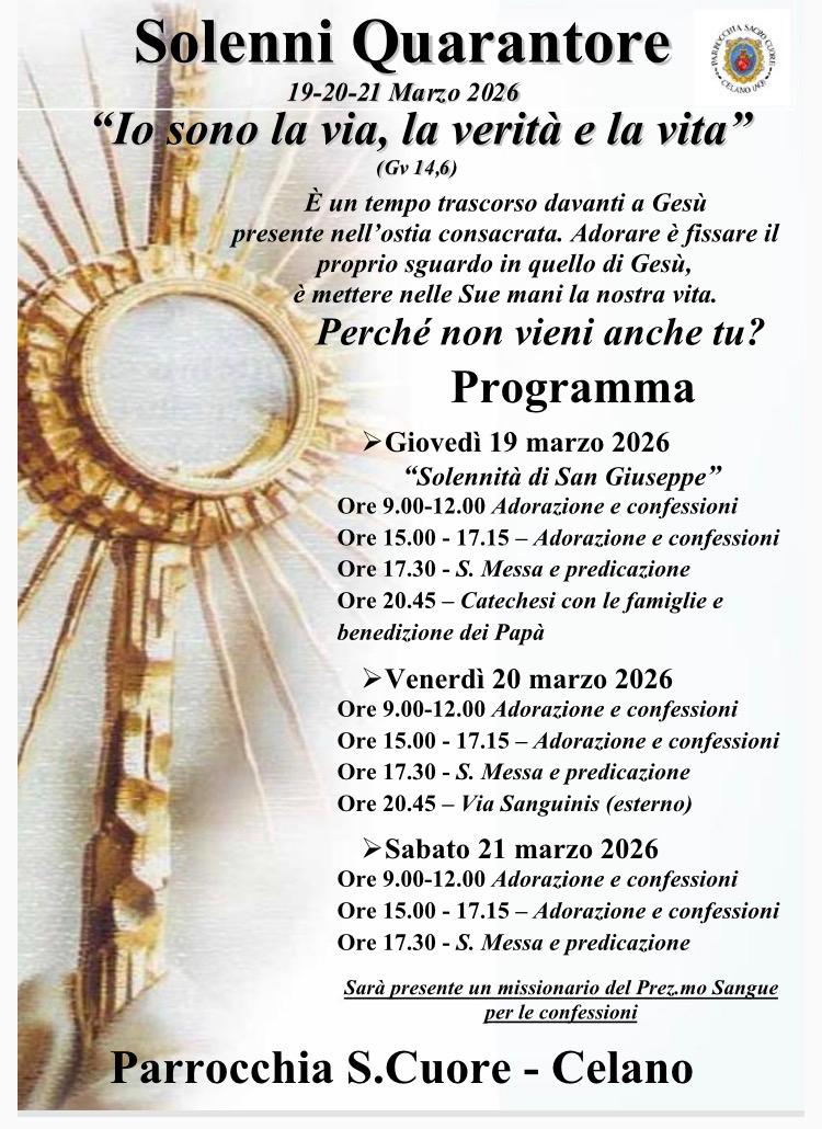 Giovedì 19 marzo 2026 Sante Quarant'ore